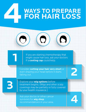 Treatment-related hair loss is temporary but being prepared for this potential side effect can make it easier to deal with. Your scalp may feel itchy or sensitive, so be gentle when washing and brushing your hair. Avoiding excess brushing or tension (in the form of braids, ponytails and heat styling)—and sleeping on a silk or satin pillowcase may help reduce hair loss. Your eyelashes and eyebrows may also be affected, so be gentle especially when washing your face or removing makeup. When new hair begins to grow back, avoid chemical processing like dyes, highlights, and straightening treatments for the first few months. And keep in mind that when hair grows back, it may be curlier or straighter, thicker or finer—or even a different color. These changes are usually short-lived, and with time your hair will likely get back to the way it was before cancer treatment.